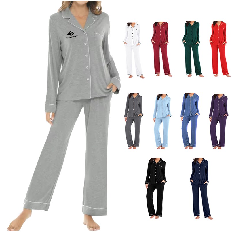 Two-Piece pajama set made from 95% Viscose, 5% Spandex it's smooth, soft, stretchy and breathable, it makes you comfortable in the lounge and sleeping time.Long-sleeve top is classic and convenient, feature a full button down front that is easy to get on and off. The comfy pajama pants have an ELASTIC, DRAWSTRING WAIST for a perfect fit and make it easier to put on and take off.